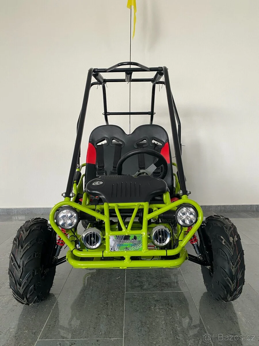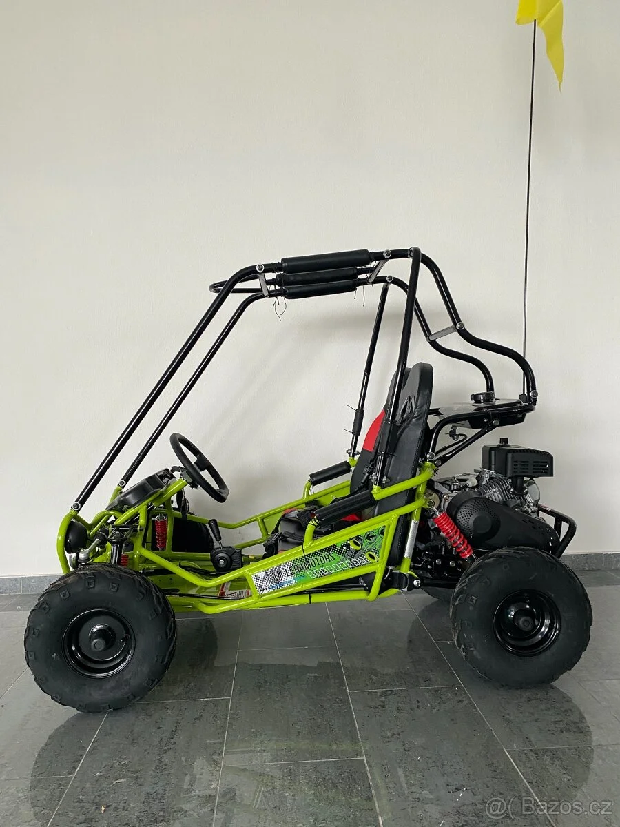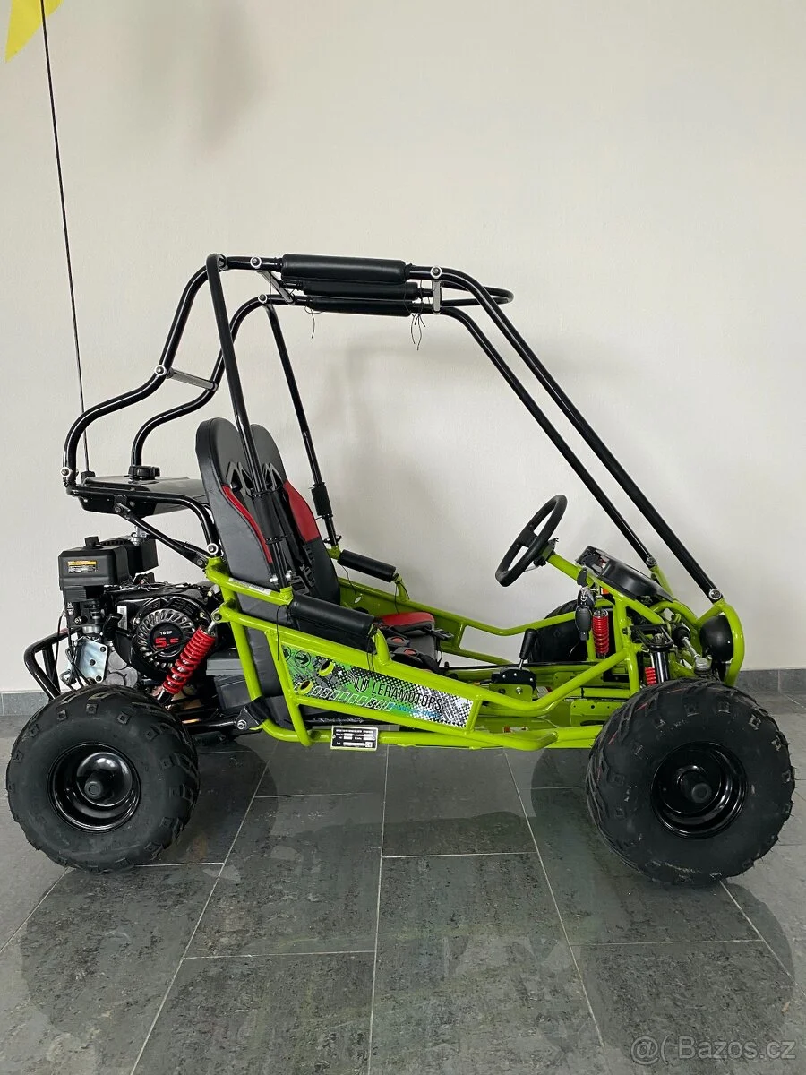 Prodej i na splátky od 1190kč/měs Nové zboží z kamenné prodejny Palivo: Natural 95 Řazení: Automat + zpátečka (odstředivá spojka) Karburátor: Dell Orto Výkon: 6 kw Motor: 170 ccm, jednoválec, 4-takt Max. rychlost: Až 45 km/h Šířka zadních kol: 84 cm Šířka předních kol: 92 cm Výška od země (v nejnižším bodě): 13 cm Výška: 102 cm Délka: 147 cm Výtrhová pojistka: Ne Dálkové ovládání start/stop: ano Možnost omezení rychlosti: Ano (doraz na plynu) Max. zatížení (krátkodobé): 150 kg Doporučené zatížení (dlouhodobé): 120 kg Hmotnost: 85 kg Objem nádrže: 4,5 l Brzdy zadní: 1x kotoučová - lanková Brzdy přední: Ne Zavěšení zadní 2x odpružení (nastavitelná tuhost) Zavěšení přední 2x odpružení (nastavitelná tuhost) Pneu zadní 145/70-6 Pneu přední 145/70-6 Ráfky: 6 palců Palce Startování: Manuální + elektrické Zapalování: Elektrické C. D. I. Rozměry balení: D x Š x V 147 x 86 x 49 cm